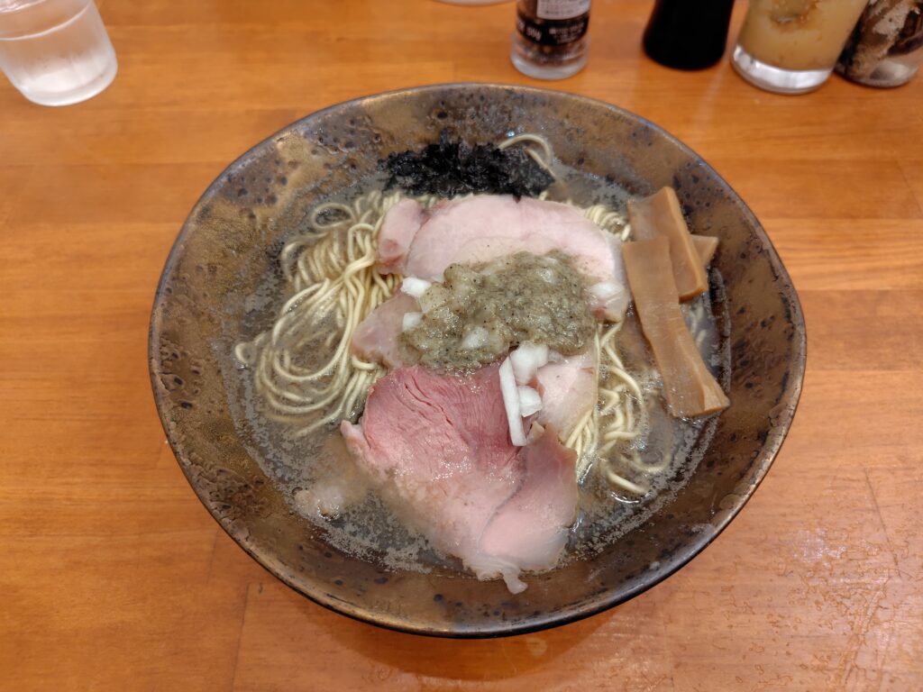 ここも煮干しが濃いメニューがあるのですが、まずは普通の物で。
