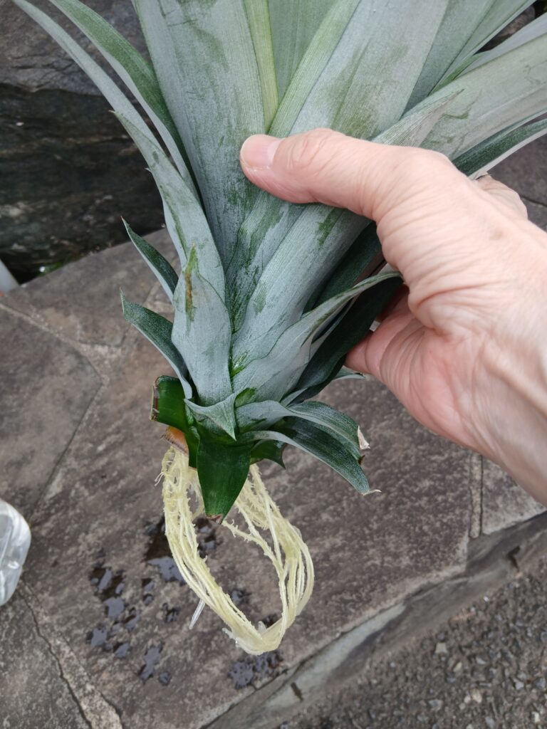 10月にご紹介したパイナップルの水栽培、しっかり根が出たので鉢に植え替えました。