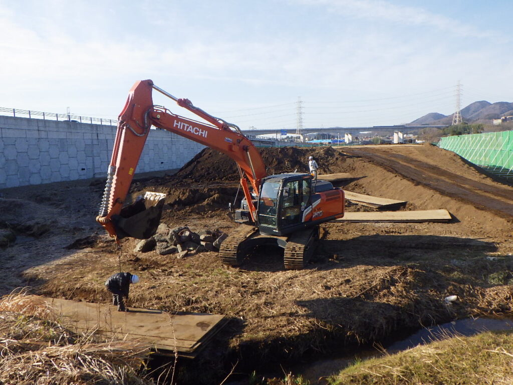 これは土砂搬出場所の、鉄板移動の写真です。